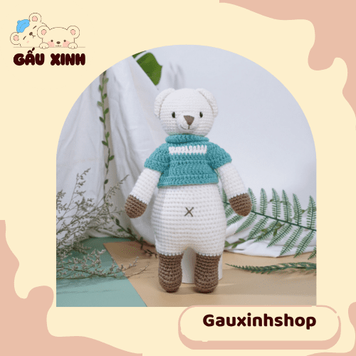 👉 Gấu len móc handmade với từng đường móc tỉ mỉ, chất liệu len sợi cao cấp, an toàn và bền đẹp. Thiết kế dáng đứng, mặc áo xanh ngọc xinh xắn, thích hợp làm quà tặng hoặc trang trí không gian thêm ấm áp. Sản phẩm handmade tại Gauxinhshop, mang đến sự độc đáo và ý nghĩa cho từng món quà.