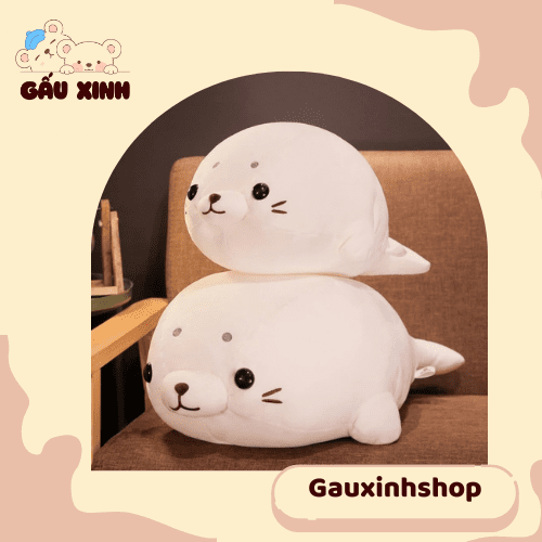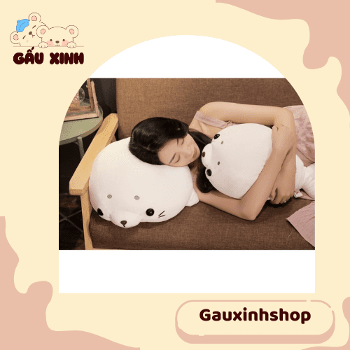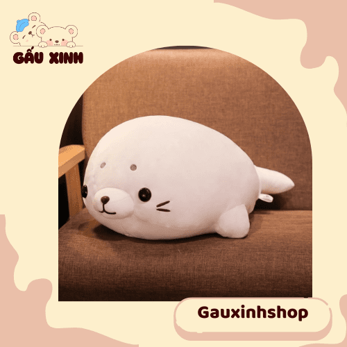 Gấu bông, gối ôm hải cẩu béo trắng 50 cm chất liệu bông cao cấp mềm mịn